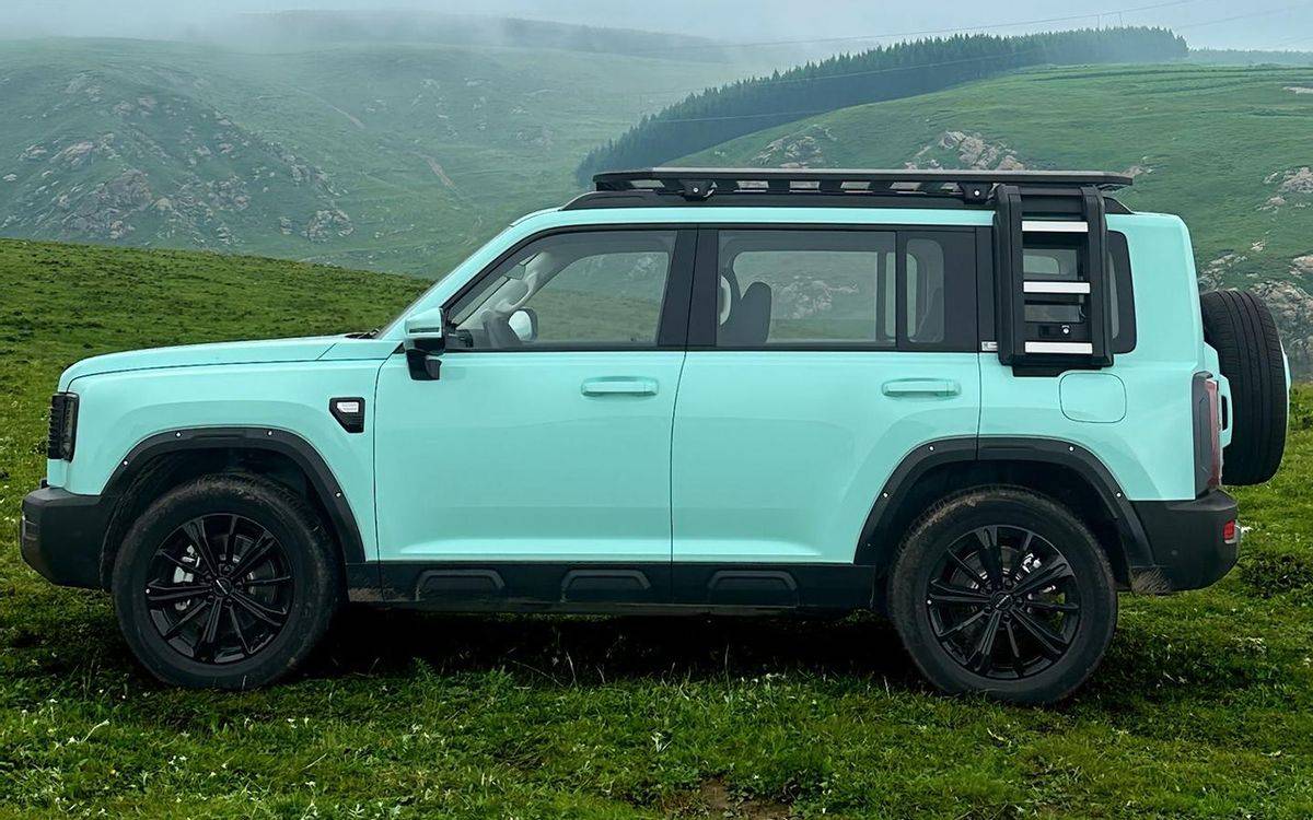 來到側(cè)面,整體仍是“方盒子”的造型設計,沒辦法,越野車的魂不能丟。不過,細節(jié)上也有調(diào)整,就比如說廠家為其增加了寬體熏黑輪眉+鉚釘裝飾,讓人看上去感覺更有肌肉力量感。