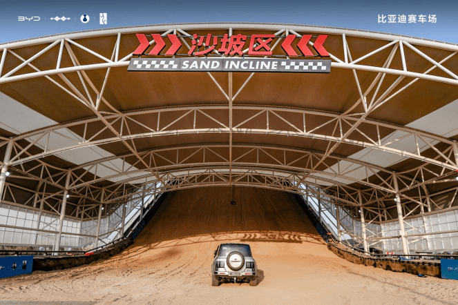從沙漠沖坡到浮水航行,比亞迪把極端地形“搬”進了城市。懸天沙坡區(qū)以29.6米垂直高度和28°坡度創(chuàng)造了兩項吉尼斯紀錄,讓用戶無需遠赴阿拉善便能體驗沖沙快感;而專屬打造的浮水航行池,則透過70米長透明水池直觀展現(xiàn)易四方技術的水中斷電直行、轉向能力。這些設計不僅打破地理限制,更讓尖端技術變得可觸可感—全速好玩盡在比亞迪賽車場,不再是一句口號,而成為可沉浸體驗的現(xiàn)實。