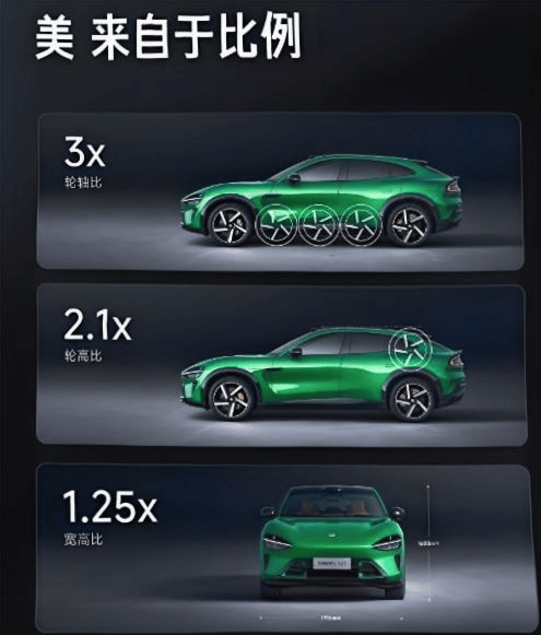 還有像寬高比,大家都知道SUV普遍比轎車要高。那1.25倍寬高比的YU7完美了,1.35倍寬高比的SU7就不好看了嗎?有的人喜歡轎車,覺得線條更優雅,有的人喜歡SUV,覺得線條更粗獷大氣,這又有什么錯呢?