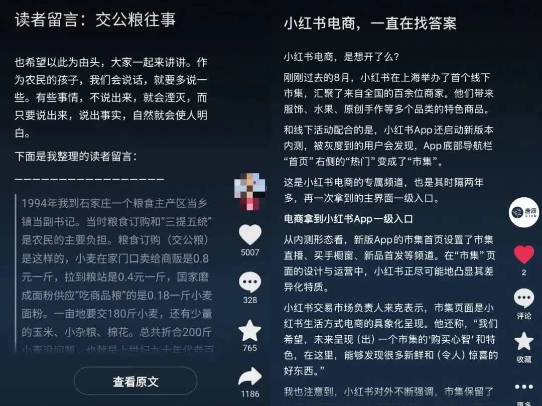 顯然,圖文內(nèi)容是抖音必須拿到手里的蛋糕,以解決流量和商業(yè)化路徑問(wèn)題。但長(zhǎng)圖文、深度內(nèi)容天然就具備承載更多信息的能力,如何不變成長(zhǎng)軟文,成為內(nèi)容垃圾,或?qū)⑹嵌兑粜枰滤伎嫉囊粋€(gè)重要問(wèn)題。
