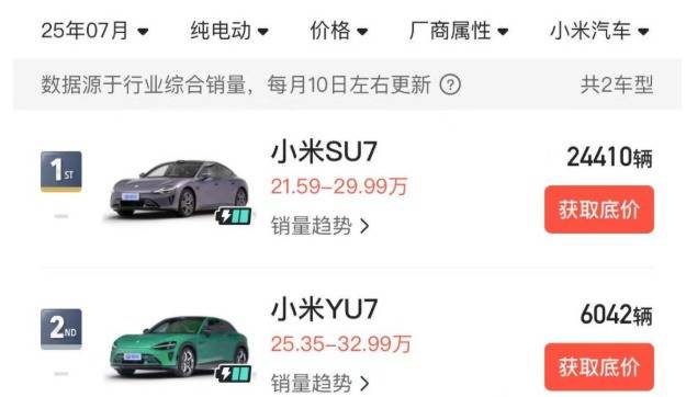 7 月,小米YU7實際交付量僅為6042輛,在純電車型中也只排到了第30名。更讓人尷尬的是,隔壁的零跑B01,僅僅用了7天時間就售出了8576輛,比小米YU7整個月交付的數量還要多。巨大的反差之下,質疑聲開始甚囂塵上,當初那所謂的20萬訂單,究竟是不是真的?