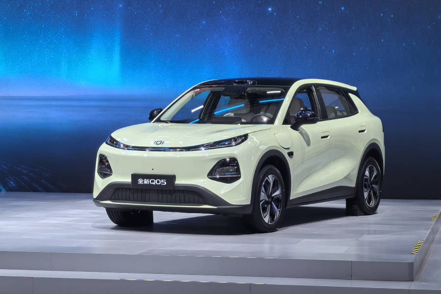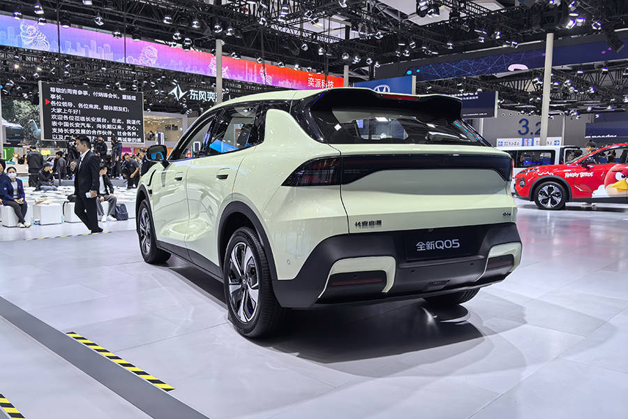 外觀部分,全新Q05采用了數智飛翼2.0設計風格,有多種配色可選,整體車頭采用圓潤的造型,上方配備貫穿式日行燈帶,封閉式格柵兩側則配備LED大燈。車身顏色方面,該車將推出松野綠、流金紫、月華銀、云影灰、云錦白5款配色供用戶選擇。