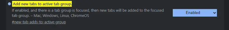 在標簽組管理方面,Chrome 還測試了“新標簽自動加入活躍組”的功能。當用戶正在某個標簽組內工作時,后續新打開的標簽頁將自動歸入當前組,保持相關網頁的有序歸類,這項功能可通過實驗性 Flag 開關激活。