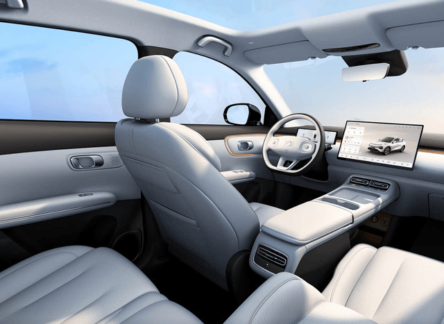 ③配置,10.17英寸液晶儀表盤+15.6英寸中控大屏,天璣P1車規(guī)級4nm芯片,24GB運存,支持華為HiCar、CarPlay、Carlink手機互聯(lián)。還有主流地圖和娛樂應用,可以連接海爾、美的等家電,實現(xiàn)生態(tài)互聯(lián)。全系都有軟包材質座椅,并且前排座椅帶加熱、通風和按摩,副駕駛支持165°放倒,還有電動腿托。