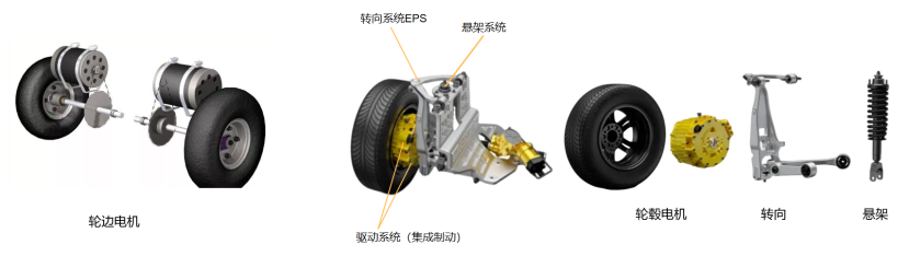 作為當(dāng)前電四驅(qū)的終極驅(qū)動(dòng)形式(輪邊電機(jī)),分布式驅(qū)動(dòng)也在逐步平臺(tái)化,后續(xù)將會(huì)演進(jìn)為分布式輪轂電機(jī)驅(qū)動(dòng)進(jìn)而擴(kuò)展為角模塊集成式驅(qū)動(dòng)。這里要說明一下輪轂電機(jī)跟角模塊還是有一定區(qū)別的,輪轂電機(jī)是將動(dòng)力、傳動(dòng)與制動(dòng)裝置集成于輪轂內(nèi)部的新的電機(jī)形式。而角模塊的定義是以輪轂電機(jī)作為動(dòng)力源,并在輪邊獨(dú)立集成有轉(zhuǎn)向系統(tǒng)、制動(dòng)系統(tǒng)和懸架系統(tǒng)的分布式電驅(qū)車輛行駛單元被稱為角模塊。