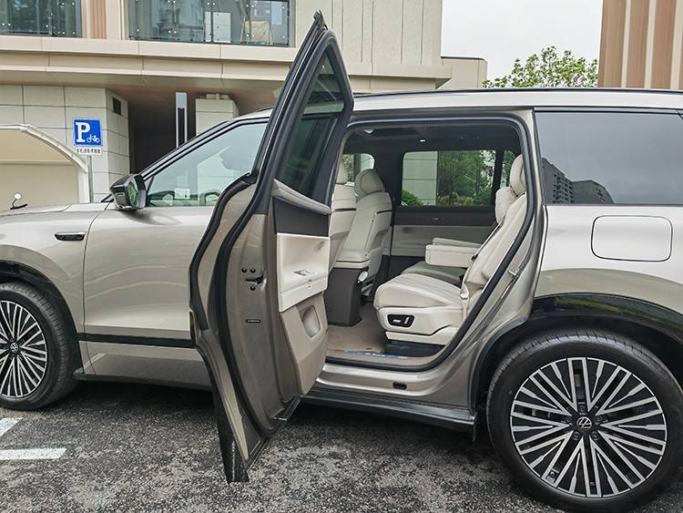 尺寸上,軸距為5207/1997/1810mm,軸距3070mm,超大的尺寸自然能帶來不錯的車內空間,后門支持80度大角度開啟,上下車更便捷。