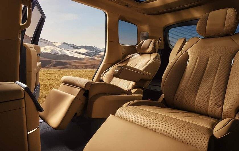 后排配置同樣看點十足,新車配備二排可翻轉娛樂屏、左側折疊小桌板與右側磁吸拓展塢,顯著提升后排乘坐體驗。座椅配置方面,前排座椅支持16點位按摩、16向電動調節,以及3檔通風、加熱與腿托加熱功能,并提供Nappa真皮材質的女王副駕零重力座椅,帶有一鍵舒躺模式、座椅集成安全帶與座墊氣囊。第二排右側同樣配備零重力座椅,左側為飛航舒享座椅,同時搭載二排電動扶手,且座椅同樣支持16點按摩、16向電動調節及3檔通風、加熱、腿托加熱等舒適功能。