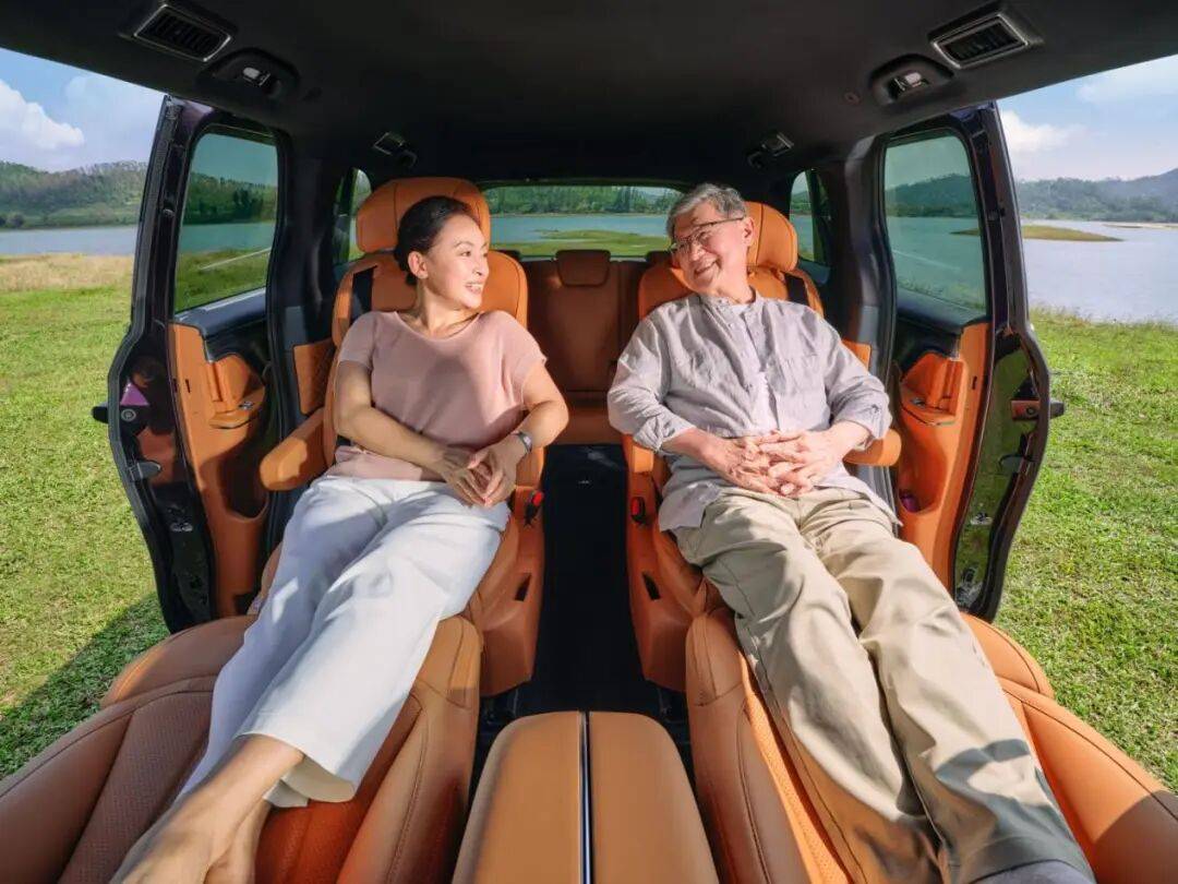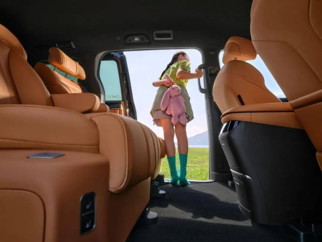 而星海V9則對細(xì)節(jié)打磨到位:200mm超寬二排中央通道,成年人側(cè)身輕松通過,小孩甚至可以直接跑過去。雙側(cè)魔術(shù)電滑門帶雙重防夾機(jī)制,老人上下車時即使動作慢、倚靠車門,系統(tǒng)也能及時感應(yīng)停止,安全冗余更高。此外,地臺高度經(jīng)過優(yōu)化,配合B柱扶手,老人上車不費勁,孩子自己也能爬上去。