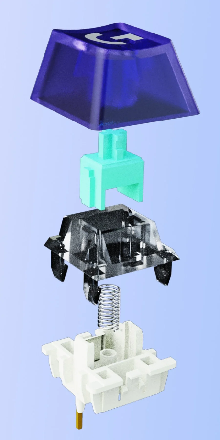 該鍵盤采用羅技 G 特調“堅果音”機械軸體,包含觸感(段落)和線性兩個版本(IT之家注:目前僅提供線性選項),配備自研防抖算法,按鍵順滑、回彈迅速、反饋扎實。此外其搭載 ABS 雙色注塑鍵帽,PCB 支持全鍵全軸熱插拔。