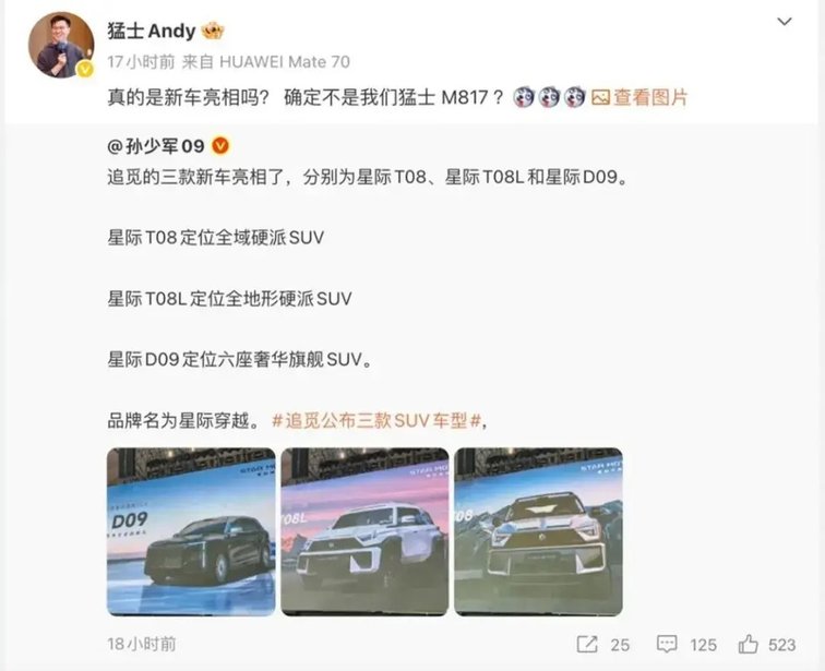 而追覓此次亮相的三款SUV車型,其硬朗的方盒子造型與東風(fēng)猛士旗下車型有著極高的視覺(jué)相似度,瞬間引發(fā)了業(yè)界關(guān)于“換殼猛士”的廣泛討論。這與當(dāng)年賽麟被詬病“美國(guó)老年代步車換標(biāo)”的爭(zhēng)議,何其相似。