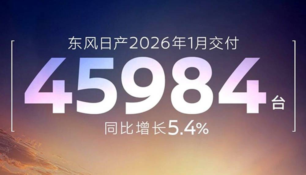 同比增長5.4%,東風日產,2026開年首月銷量45984臺